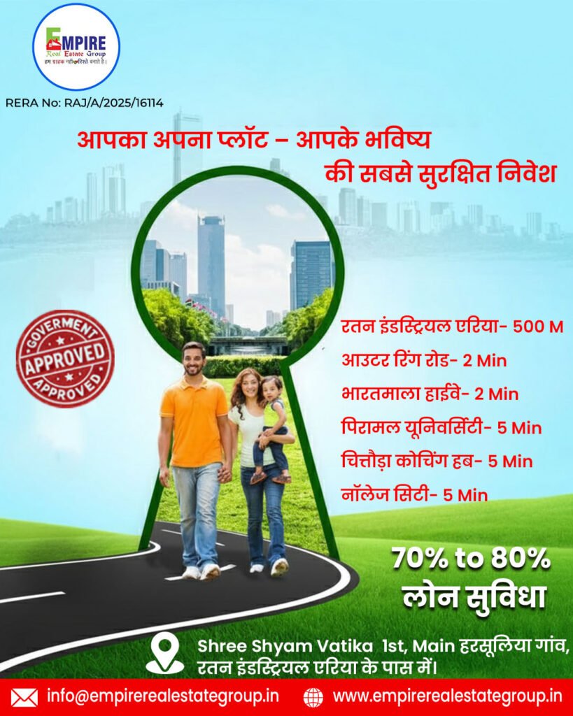 30 फीट रोड वाले प्लॉट रेट: ₹10,499/- प्रति गज सीमित प्लॉट उपलब्ध हैं। Empire Mangal Vihar – Govt Approved Plots Near Mahindra SEZ, Jaipur Looking for your dream plot in Jaipur? Empire Mangal Vihar offers the perfect opportunity to own a Government Approved residential plot near Mahindra SEZ, Jaipur — one of the city’s fastest-growing […]